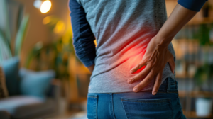 Lower back pain refers to discomfort or pain in the area of the lower part of the back, usually between the rib cage and the
